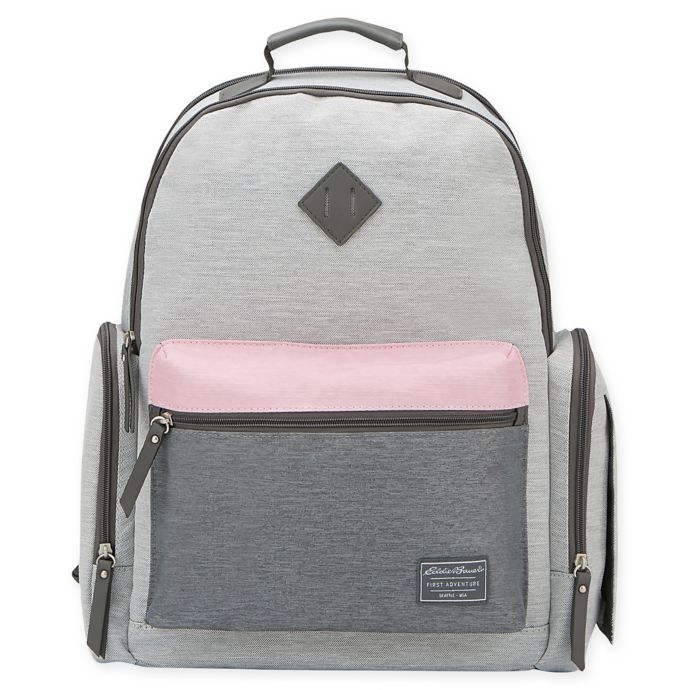 Eddie Bauer Places Spaces Fineline Diaper Backpack In Grey Pink Bed Bath Beyond