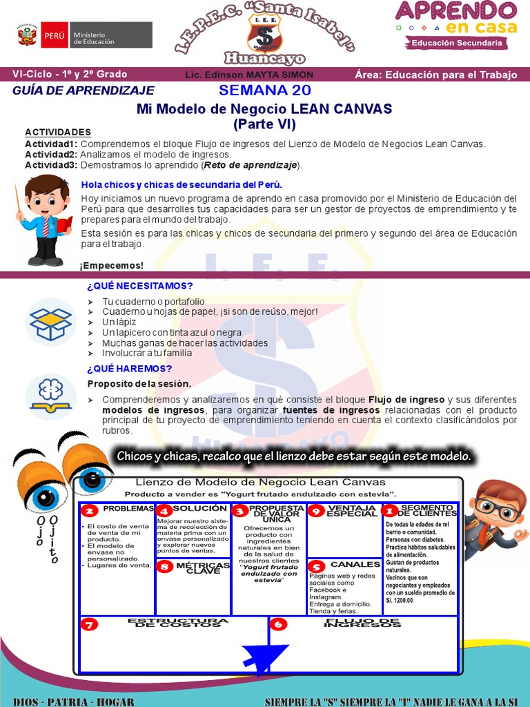 Semana 24 Aplicamos El Modelo De Negocios Lean Canvas Parte Viii Colegio Julio Alberto Ponce Antunez De Mayolo