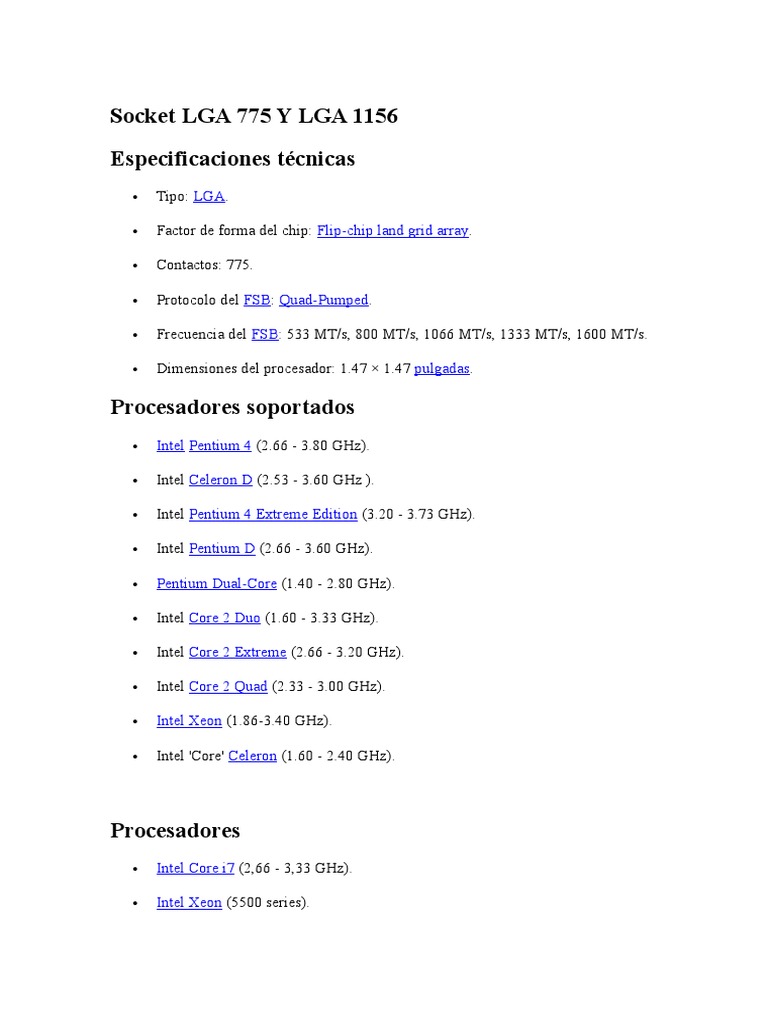 Socket Lga 775 Y Lga 1156 Microprocesador Clases De Computadoras